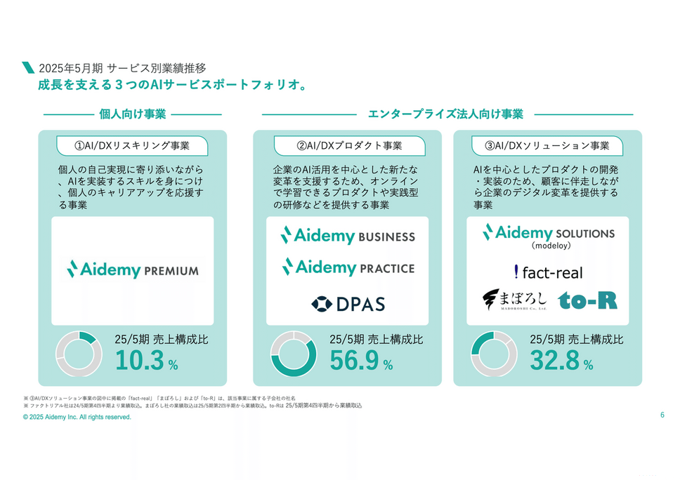 ②AI/DXプロダクト事業:オンライン学習コンテンツや実践型の研修を提供(売上構成比56.9%)