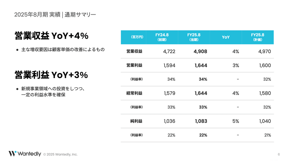 Wantedly 2025年8月期通期決算(2024年9月~2025年8月)