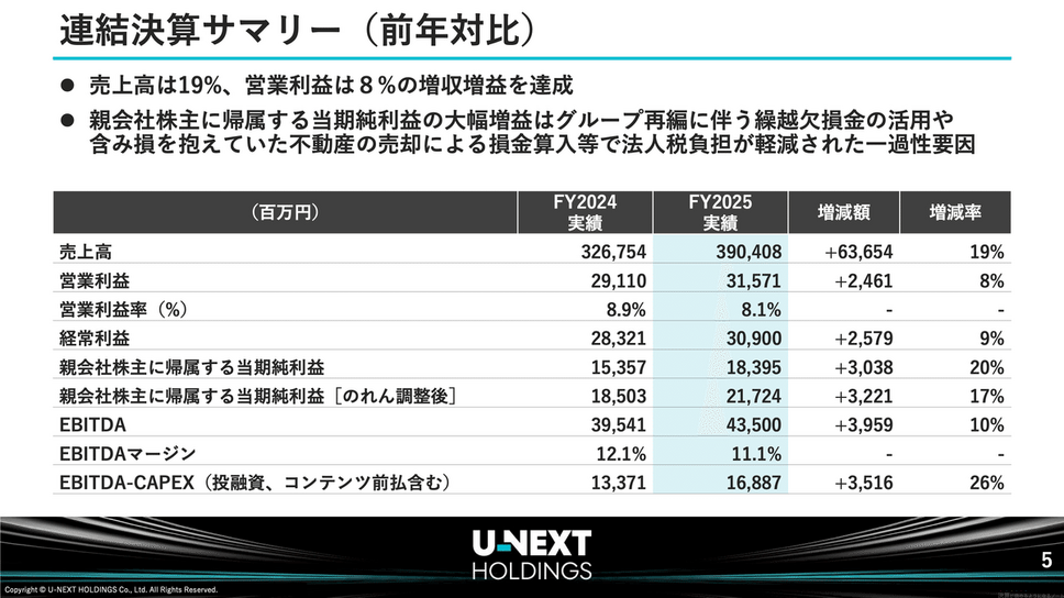 U-NEXT 2025年8月期通期決算(2024年9月~2025年8月)