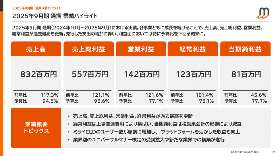 ミライロ 2025年9月期通期決算(2024年10月~2025年9月)