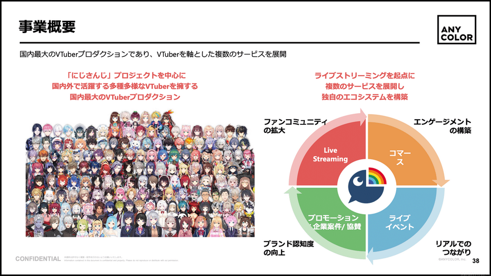 ANYCOLORは、VTuberグループ「にじさんじ」を中核に、国内外で多数のVTuberを抱える国内最大級のVTuberプロダクションです。