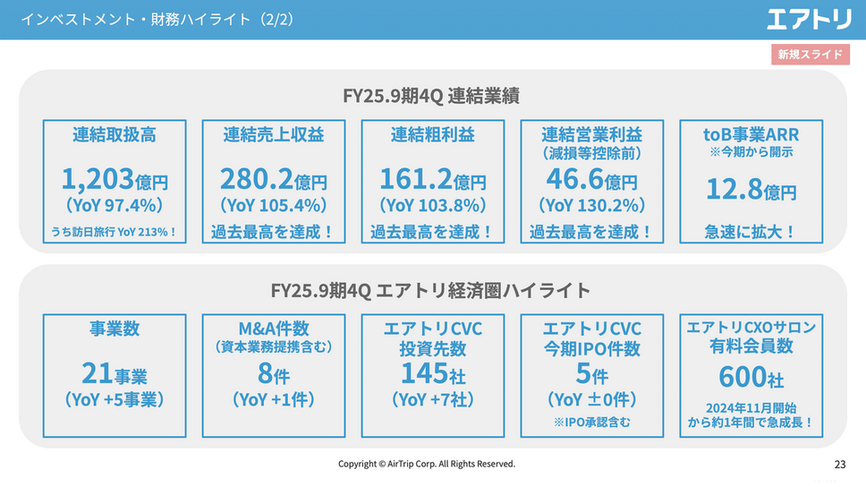 2025年11月14日、株式会社エアトリが2025年9月期通期決算を発表しました。