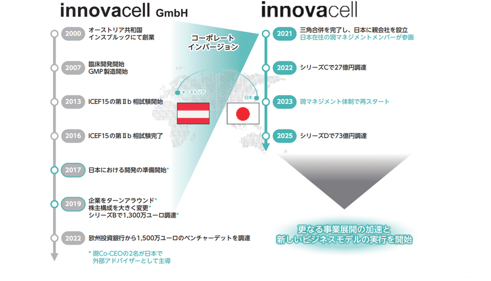 イノバセルは、失禁治療の再生医療を開発するバイオベンチャーです。2000年にオーストリア・インスブルックで創業したInnovacell GmbHを起源としており、日本では2021年に親会社が設立され、国内での事業体制が整えられました。