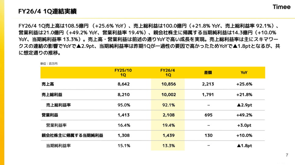 タイミー 2026年4月期Q1決算(2025年11月~2026年1月)