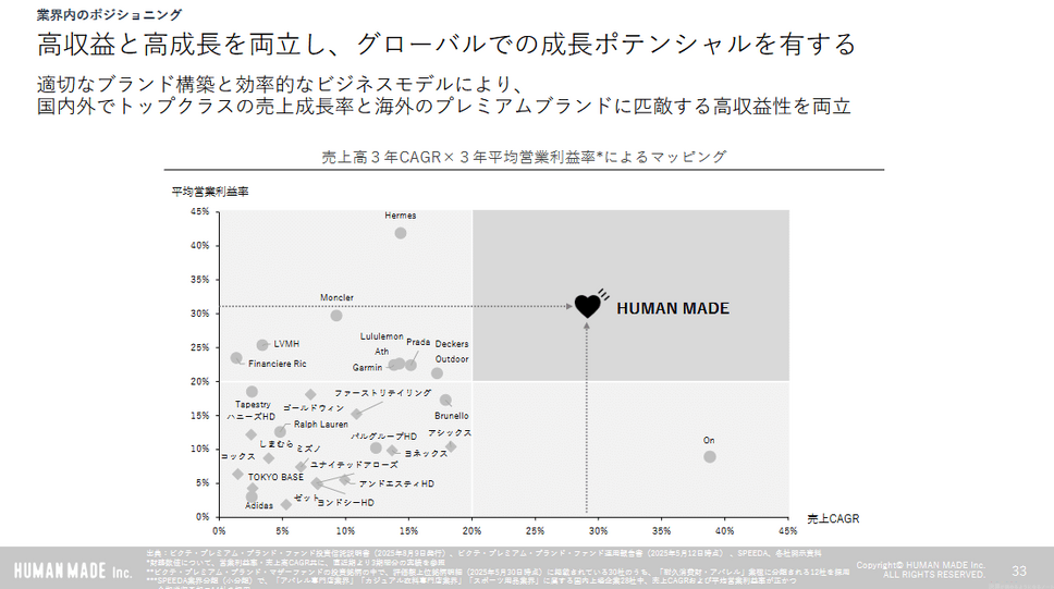 また、同社は高収益と高成長を両立しており、売上高CAGRは約30%と国内外のアパレル企業の中でもトップクラスの成長率を実現しています。