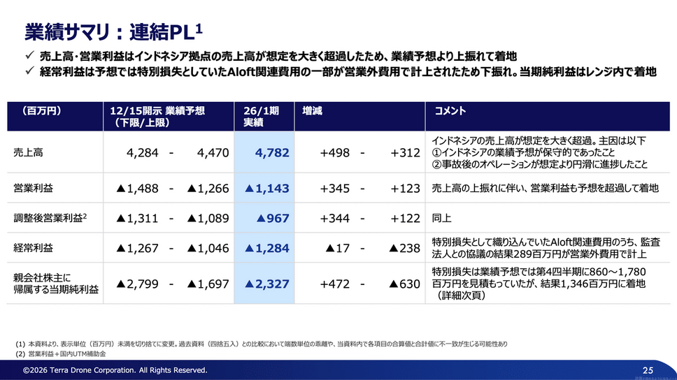 Terra Drone 2026年1月期通期決算(2025年2月~2026年1月)