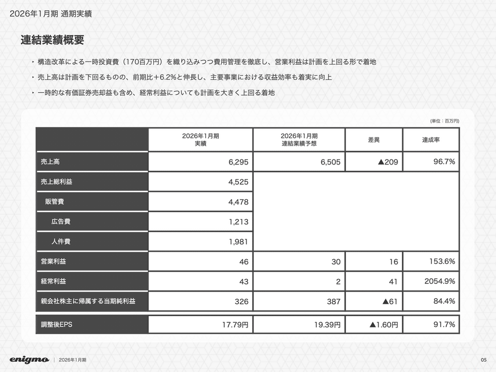 2026年3月16日、株式会社エニグモが2026年1月期通期決算を発表しました。